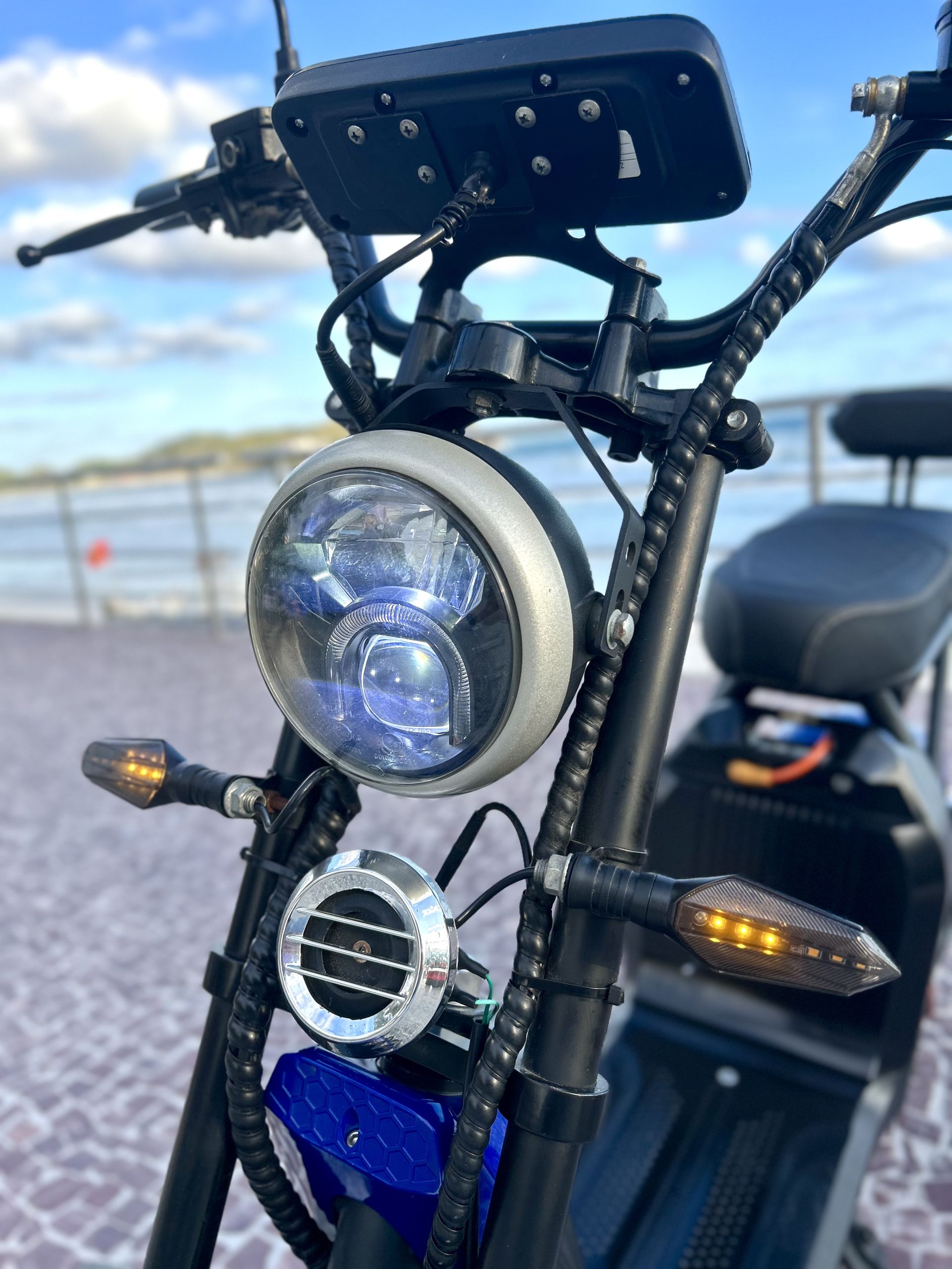 Iluminação completa em LED: farol, setas e luz de freio com alta intensidade.