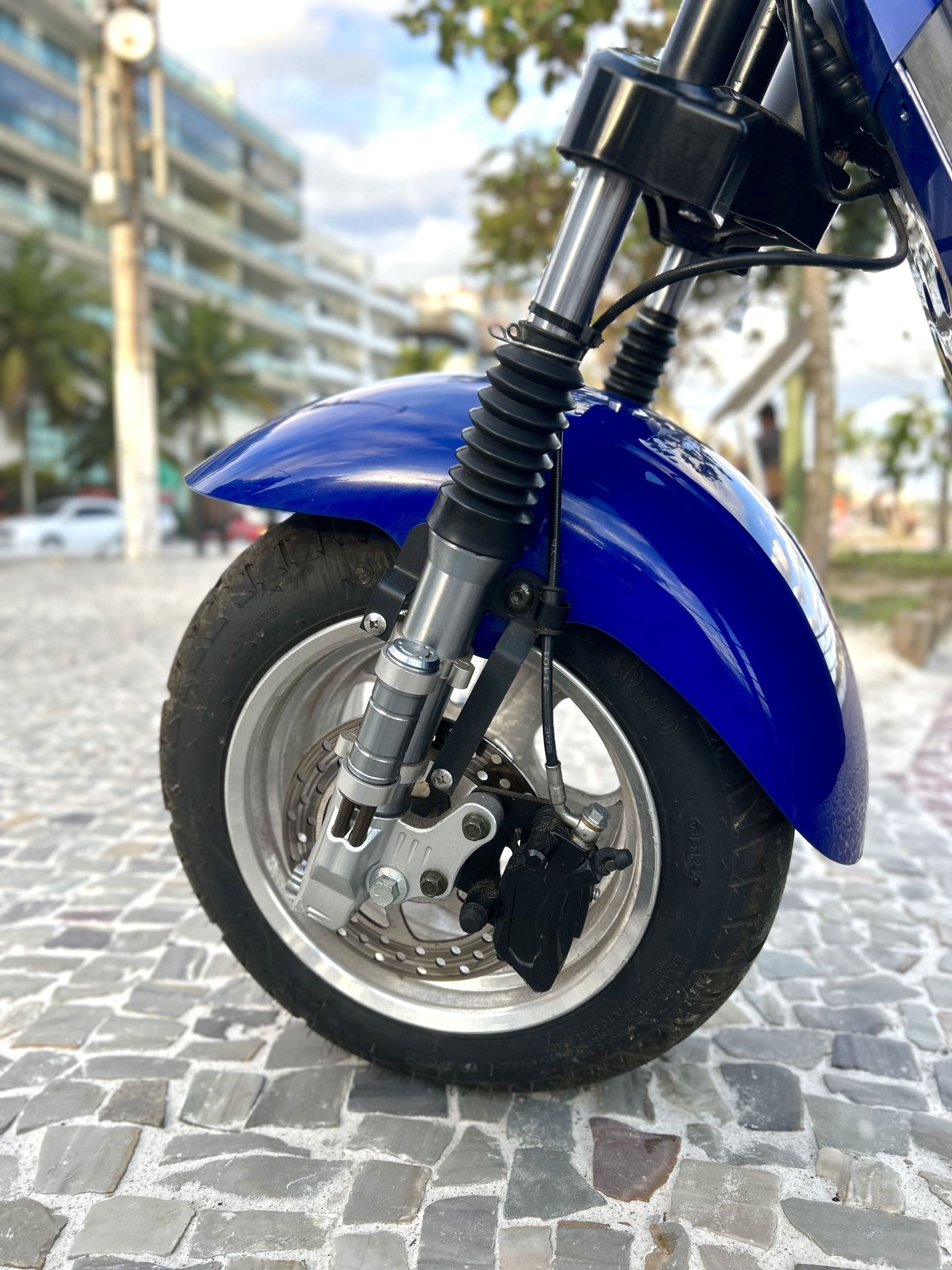 Freios a disco hidráulicos, sistema de frenagem potente e seguro, garantindo total controle.