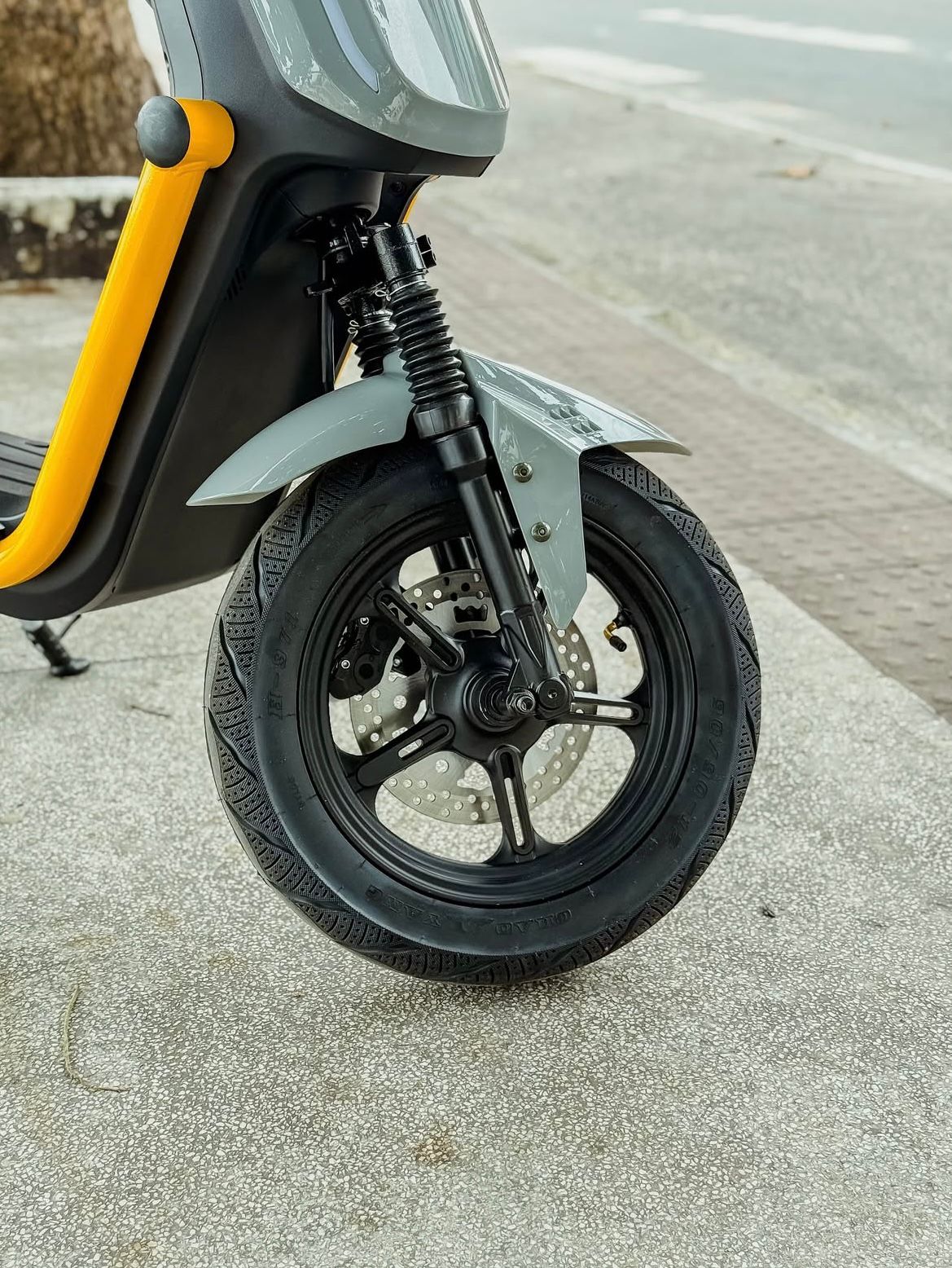 Freio a disco hidráulico, garantindo frenagens mais seguras.